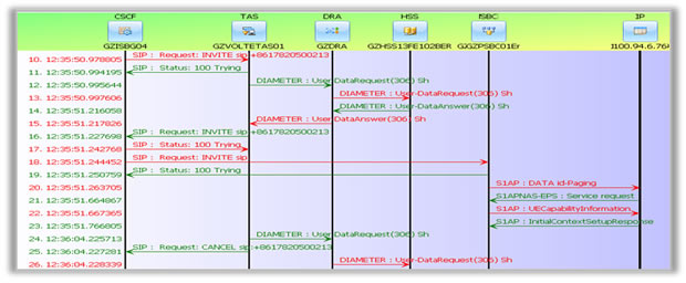 通过监测分析EPC、IMS、2G/3G的全部接口信令和数据,获得用户VoLTE的全协议流程信息和关键指标,快速定位网络中VoLTE的问题环节。